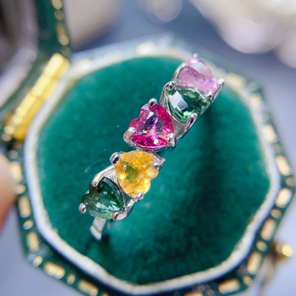 女性用ナチュラルトルマリンリング、925シルバー、K18金メッキ、パーティーギフト