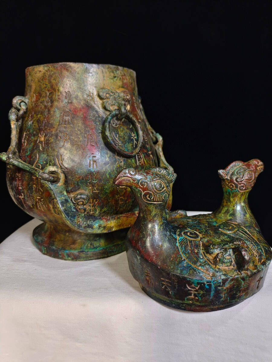 - 【超珍館蔵】西周 青銅製 銘文西瓜敦 置物 古賞物 古美術品 稀少珍蔵品