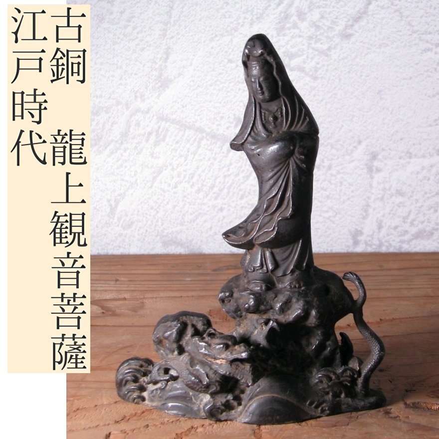 - 仏教美術 古銅 龍上観音菩薩 高さ:16cm 重さ:478g 江戸時代 仏像/24L072