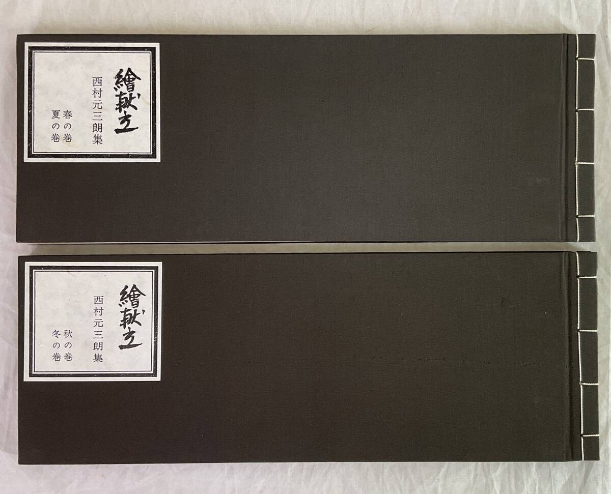 - 《古本》 1034 ◇ 絵献立 西村元三朗集 春夏秋冬 全2冊揃 昭和51年 (1976) ◇ 和装本 日本料理 和食 会席 図録