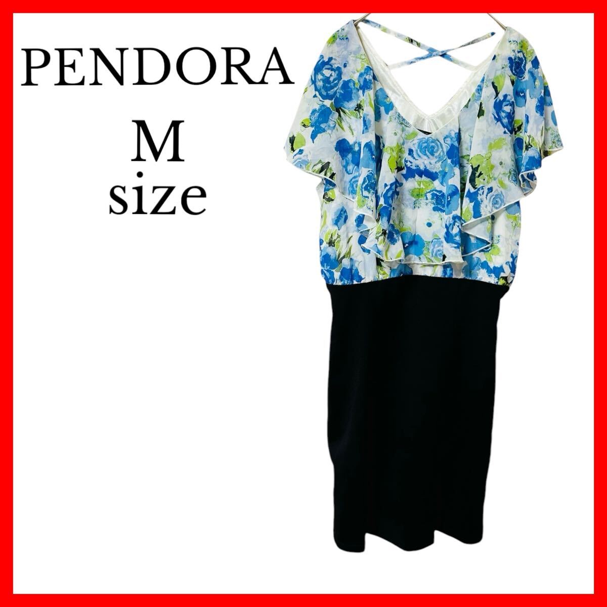 - 【PENDORA】Mサイズ レディース 花柄 フリルトップ ワンピース ブルー 白 ブラック バッククロス スタイリッシュ フォーマル パーティー