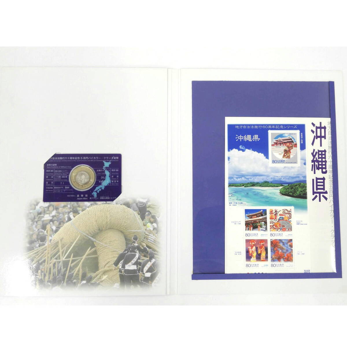 - 送料無料 沖縄県 地方自治法施行六十周年記念 五百円バイカラー・クラッドプルーフ 切手付き Bセット①