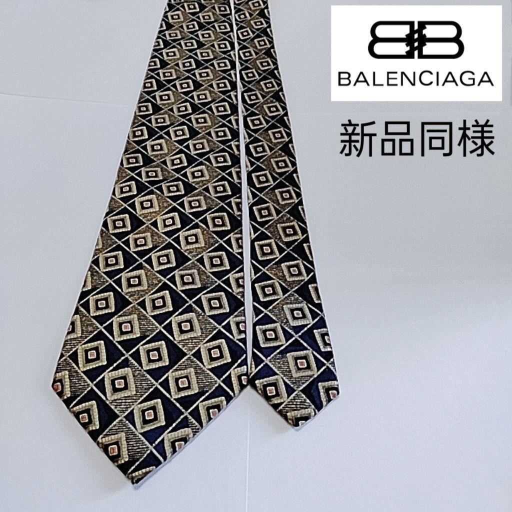 - 未使用に近い 超美品 バレンシアガ ネクタイ ネイビー ビジネス 柄