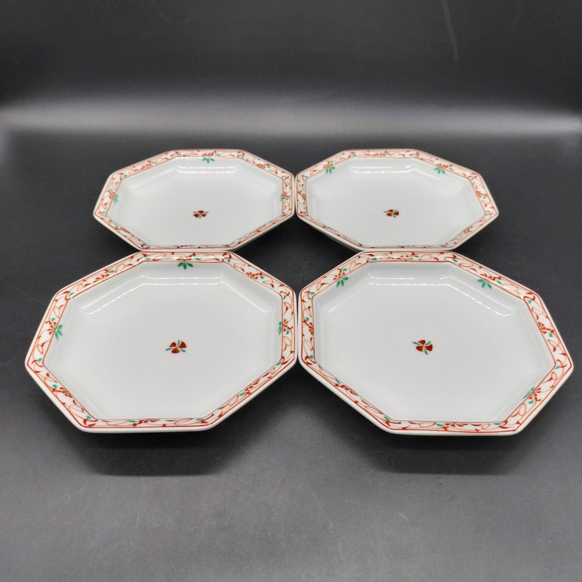 - 庫山窯 中皿 八角 赤絵 皿 前畑陶器 美濃焼 お皿 和皿 ツ3-7