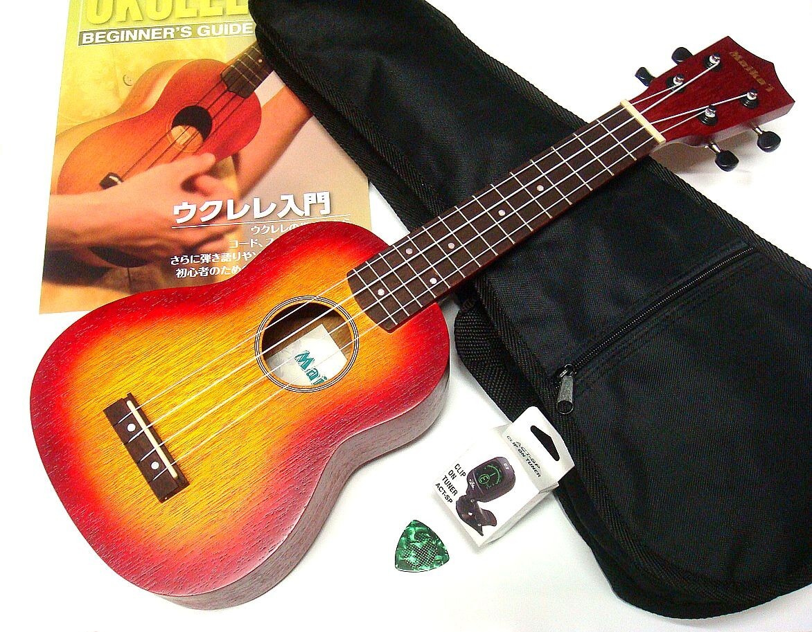 - ウクレレ初心者セット Maikai MKU-1 CS 5点セット チェリーサンバースト DVD付き教則本 ケース チューナー ピック セット 検品後発送で安心