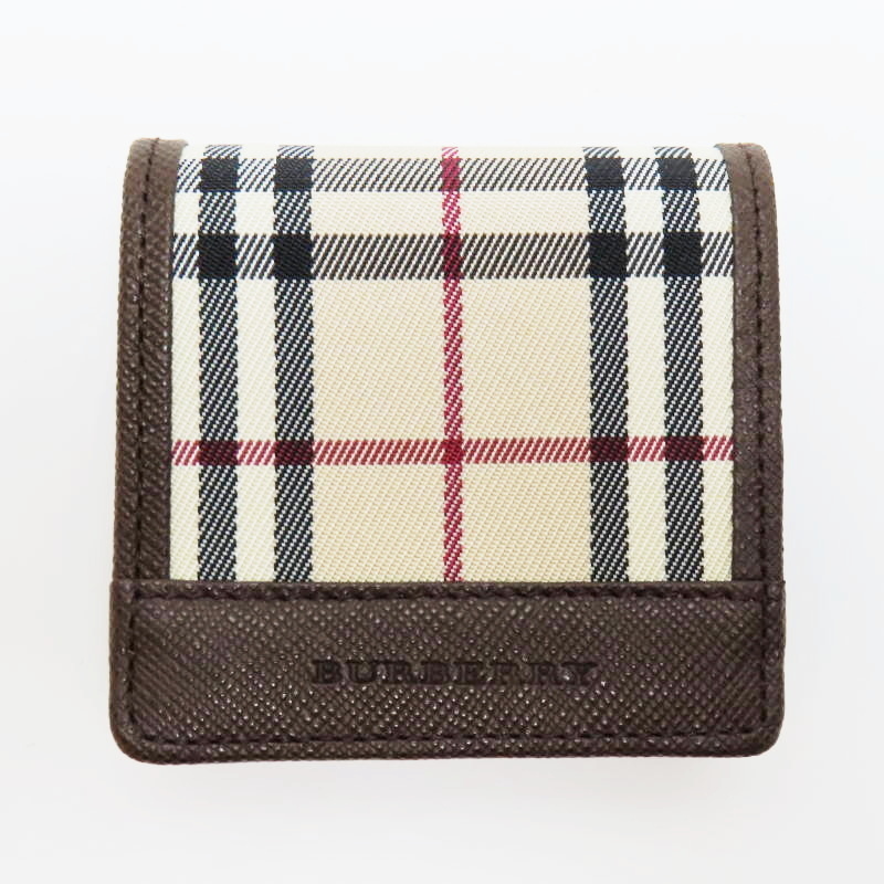- T12-k058 美品 BURBERRY バーバリー ノバチェック キャンバス/レザ― ホック コインケース 小銭入れ ベージュ/ブラウン