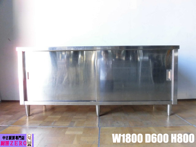 - 中古厨房 業務用 食器庫 食器棚 収納棚 スライド扉 ステンレス W1800×D600×H800mm 店舗 戸棚 飲食店 調理場