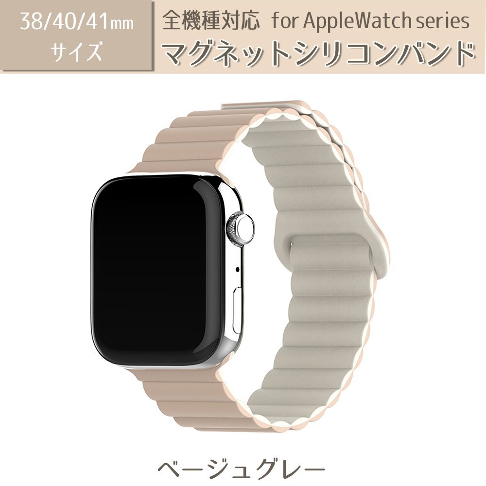 > AppleWatch アップルウォッチ 時計 バンド ベルト シリコン マグネット 交換ベルト 男女兼用 38mm ベージュグレー watchband-9bg38
