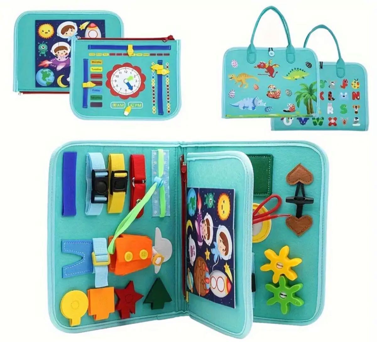 - ビジーボード 知育玩具 モンテッソーリ 知育 バッグ 教育 幼児 パズル 学習 知 育 おもちゃ モンテッソーリ オレンジ色 恐竜