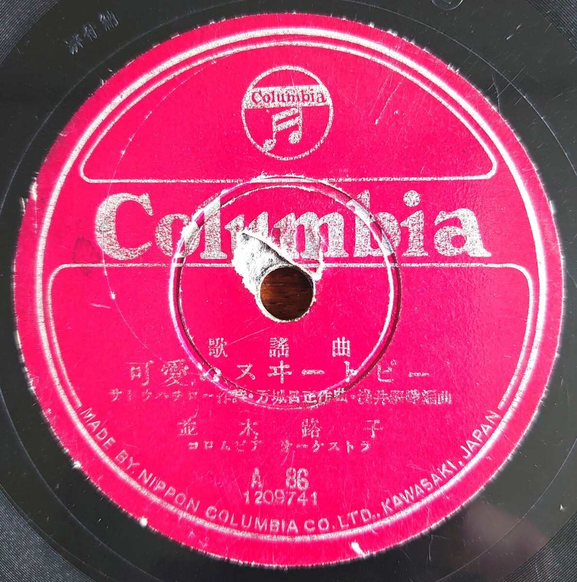 - 【蓄音器用SP盤レコード】Columbia A86 歌謠曲/可愛いスヰートピー 並木路子/二人でゐれば 並木路子・津村謙