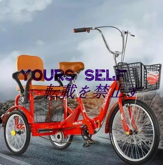 - 実用品!前輪20インチ・後輪16インチ 大容量 後カゴ付 大人用 三輪自転車 収納便利 高齢者用 高さ調節可能 組立品 初心者の自転車 104