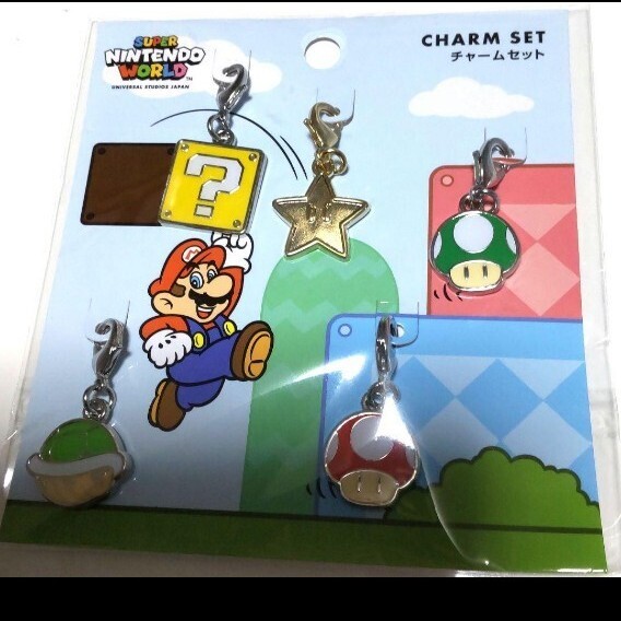 - ユニバ USJ 任天堂 マリオ チャーム キーホルダー 新品 スター、キノコ、ハテナブロック