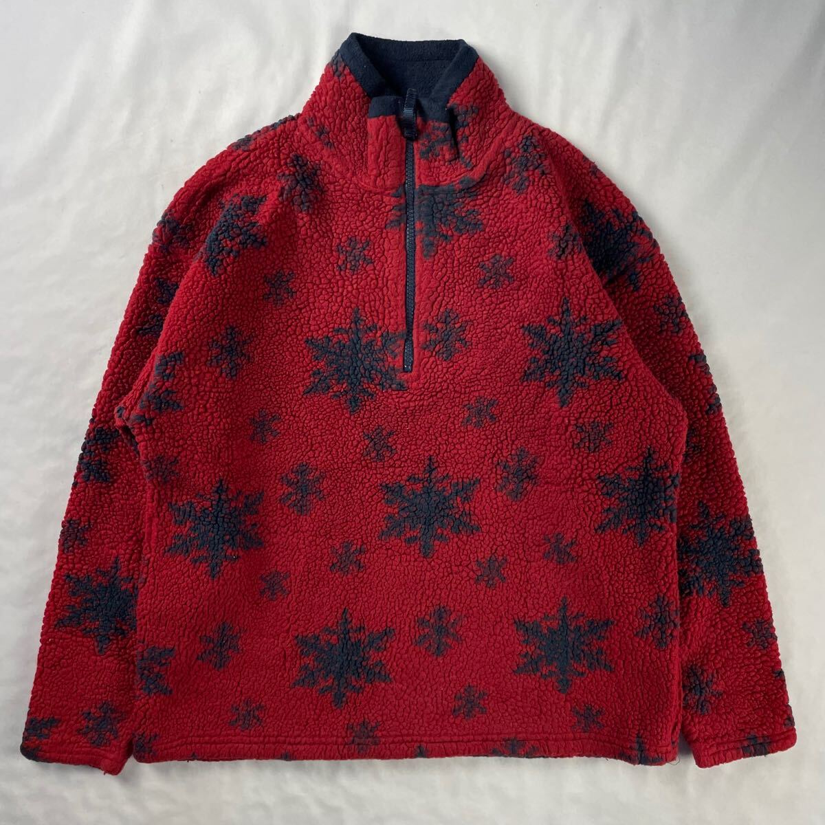- US Vintage 00s GAP ポリエステル64% アクリル36% ハーフジップ 好配色 バイカラー スノーフレーク 総柄 ボア フリース ジャケット