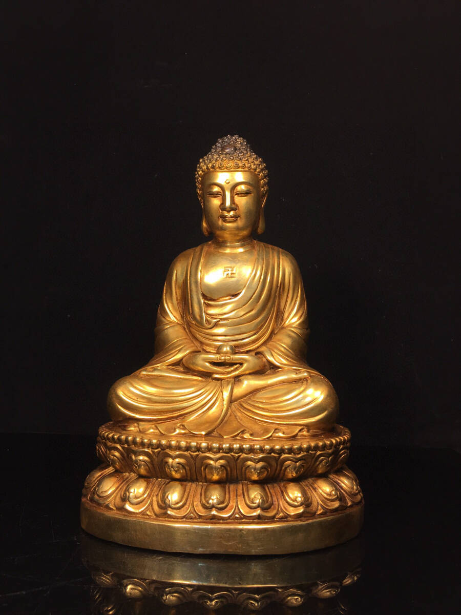 - 【仁】『銅製・塗金・釋迦牟尼像・仏教古美術・供養品』極細工 古賞物 中国古玩 古美術 古美味