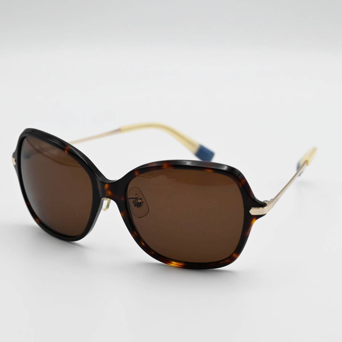 > T11-k791 FURLA Fロゴ セル/メタルフレーム べっ甲柄 サングラス ブラウン/ベージュ/ブルー