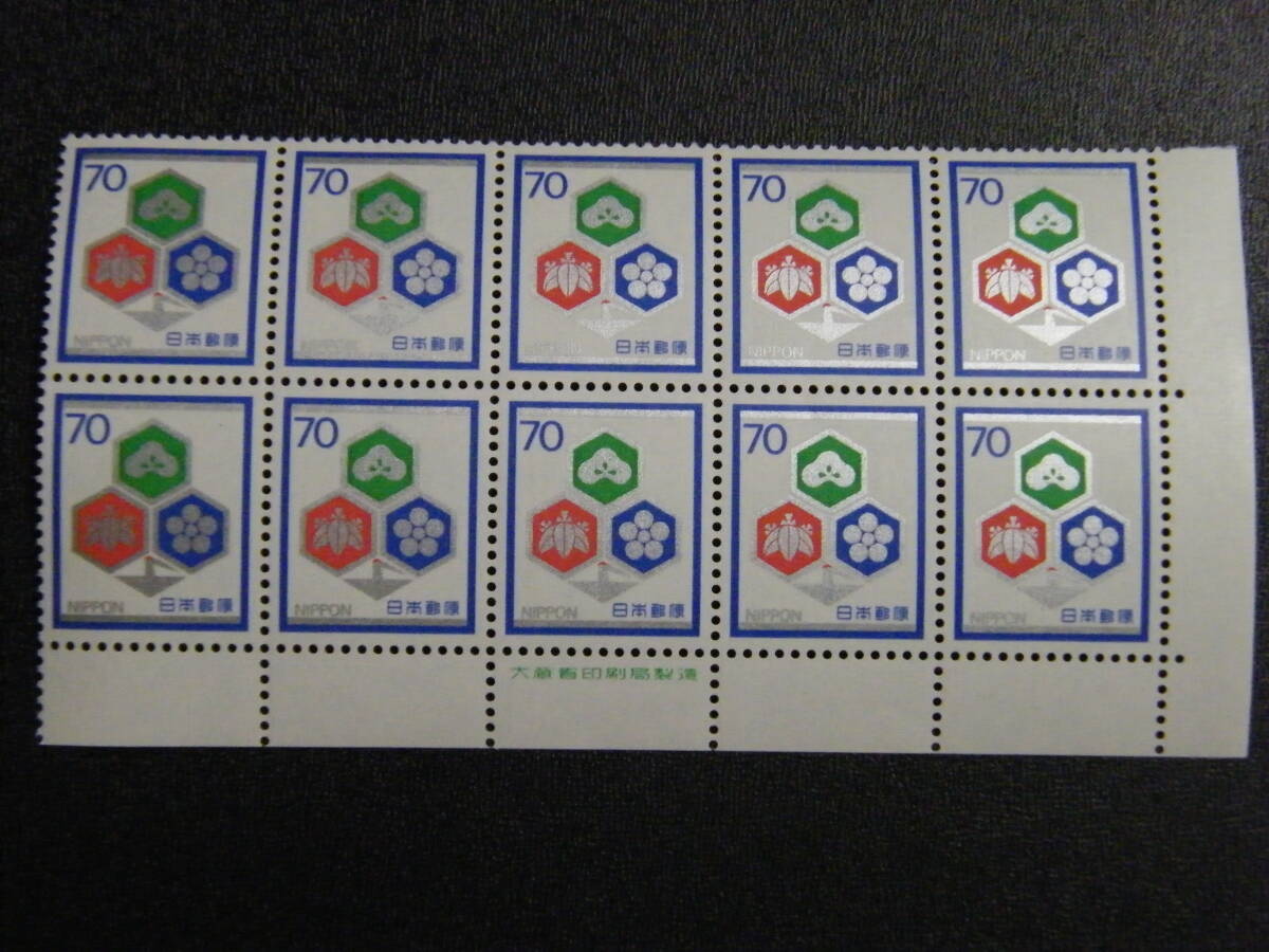 - 松竹梅 70円 銘版「大蔵省印刷局」 10枚ブロック 未使用 第1次慶弔切手