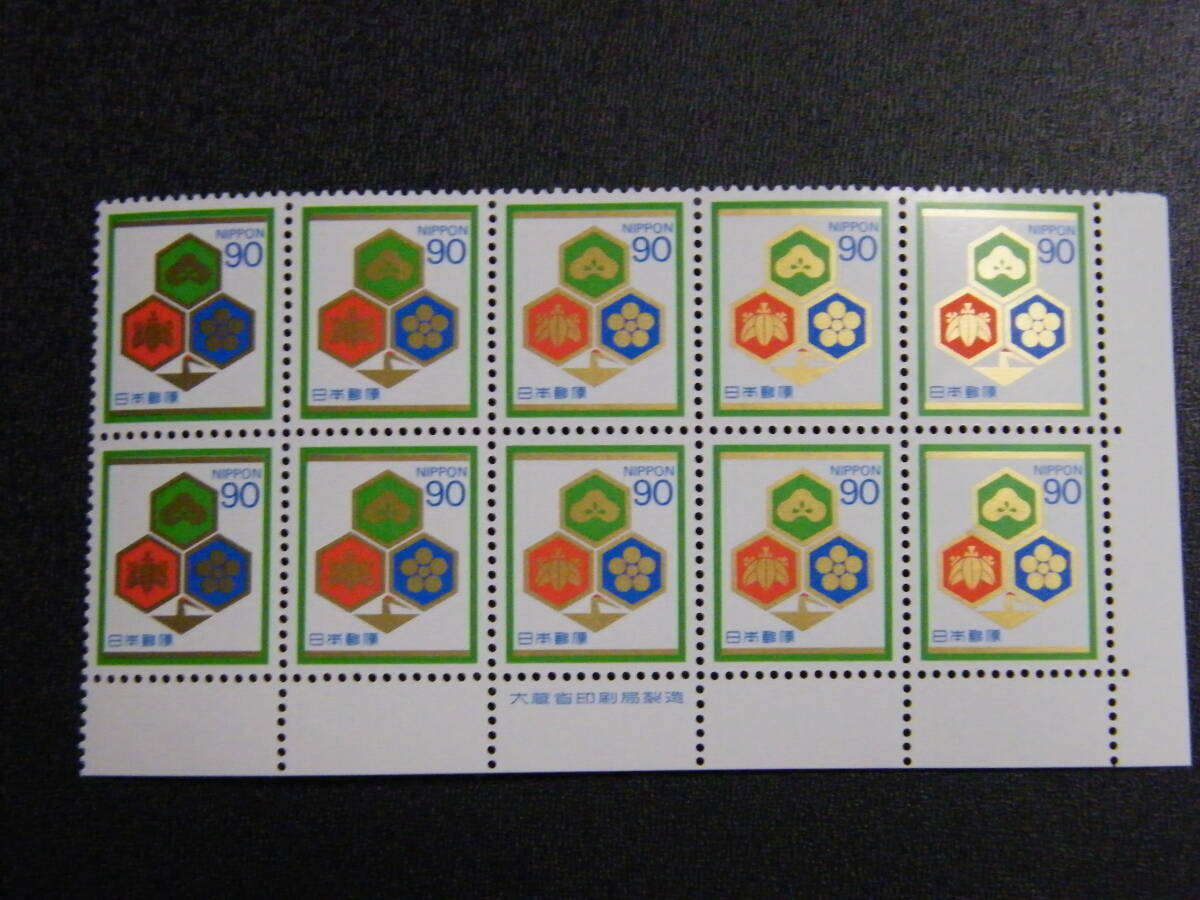 - 松竹梅 90円 銘版「大蔵省印刷局」 10枚ブロック 未使用 第3次慶弔切手