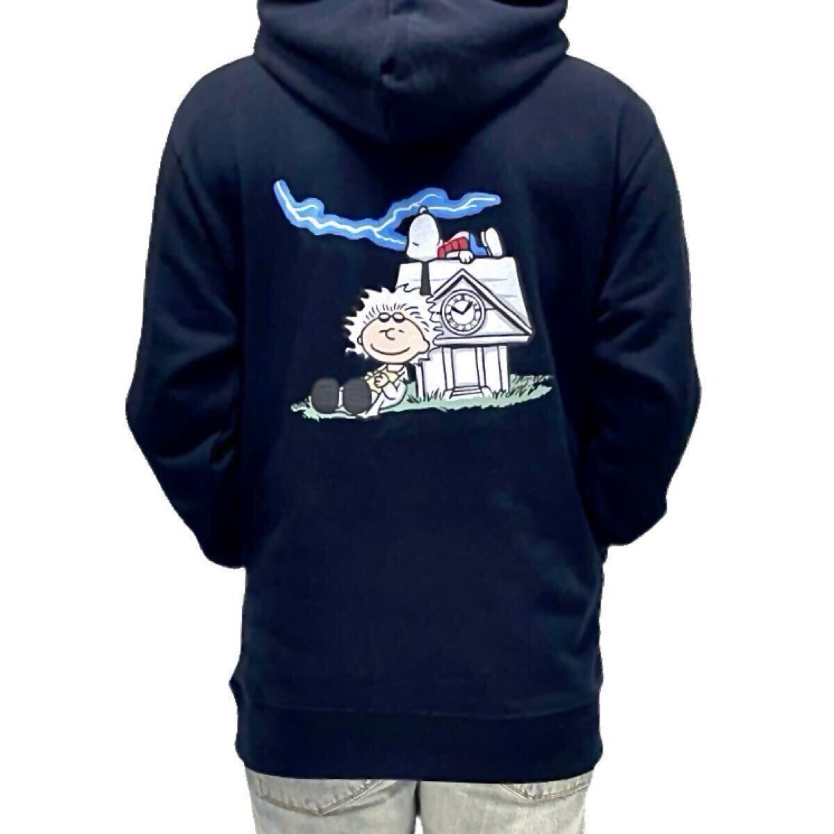 - 新品 バックトゥザフューチャー チャーリーブラウン ドク スヌーピー マーティ 時計台 昼寝 バックプリントパーカー ユニセックス Mサイズ