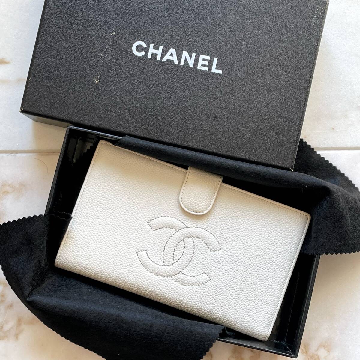 - CHANEL シャネル キャビアスキン レザー がま口 長財布 ホワイト 白