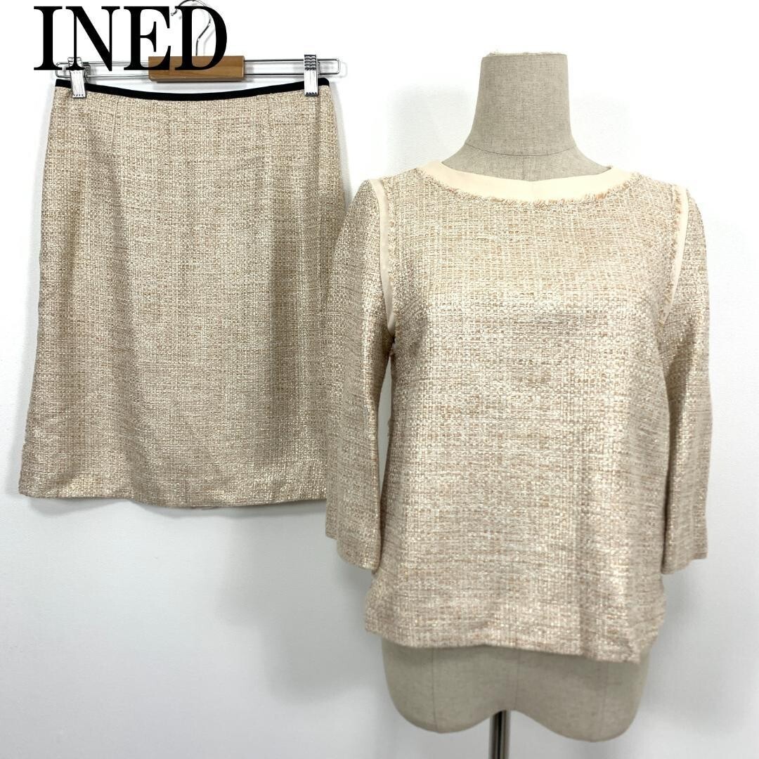 - LA4564 イネド ツイード 切り替え スカート セットアップINED 切り替えデザイン 7分袖ブラウスベージュ 9