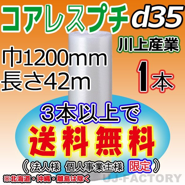 > 【3本以上で送料無料/法人様・個人事業主様】★川上産業/コアレスプチ(d35) 1200mm×42m ×1本★エアーパッキン/ロール/シート・梱包材