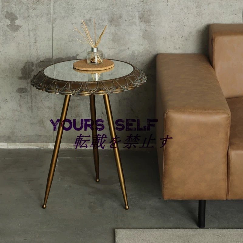 - ビンテージ 丸型 テーブル ローテーブル 鏡面ガラステーブル センターテーブル ガラス おしゃれ コーヒーテーブル