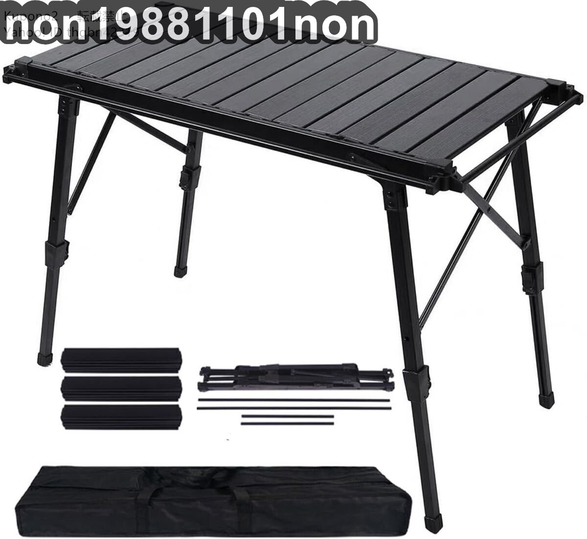 - 新品推薦★ アウトドアテーブル 折り畳み 組立不要 高さ無段階調節可 吊り下げ用サイドレール付 アルミ合金 軽量
