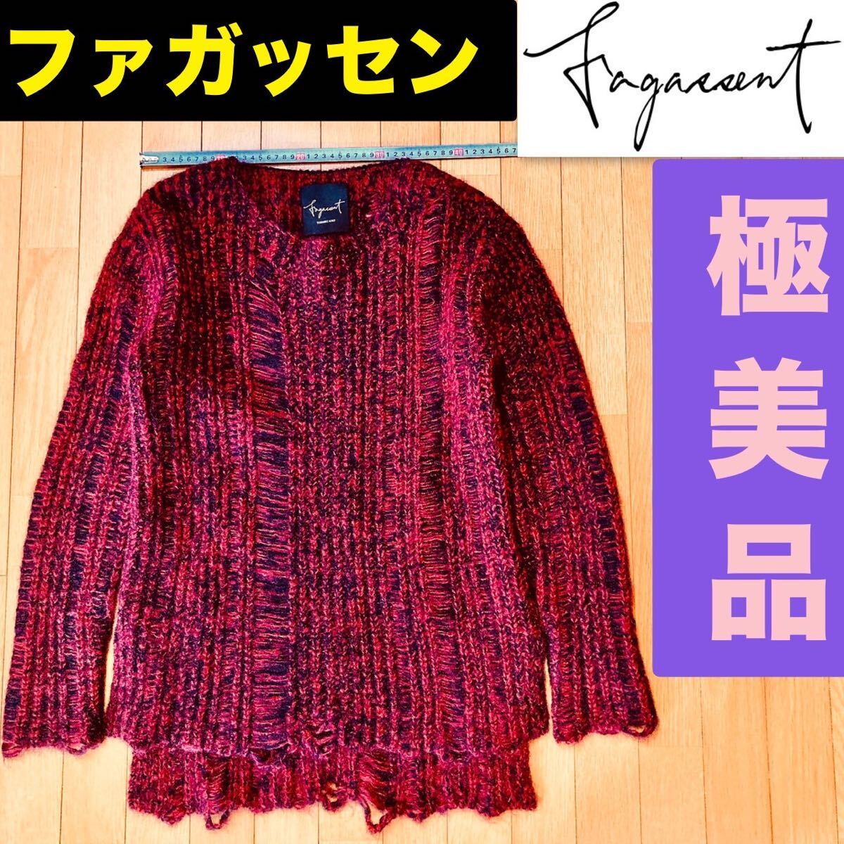 > 新品未使用 FAGASSENT デストロイ ダメージ加工 クラッシュ ニット 2 ファガッセン セーター 赤 黒 Knit sweater destroy damaged Y2K 00s
