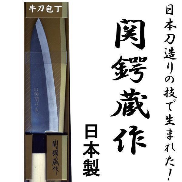 > 送料無料 関鍔蔵作 白木和包丁 牛刀 刃渡り約185mm 両刃