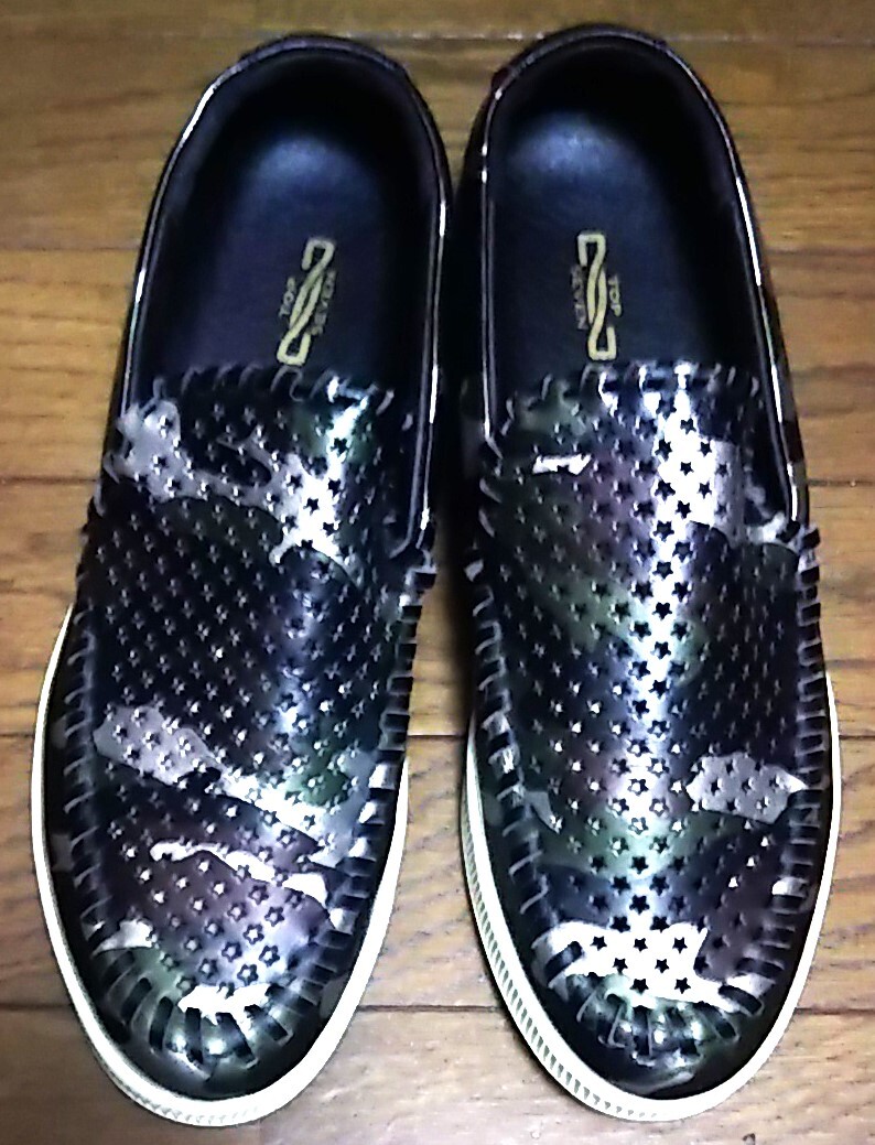 > 即決・送料込★TOP SEVEN トップセブン★美品・スターレザー本革スリッポン TS-297STAR★カモフラージュ EUR40(25.5㎝相当)やや大き目