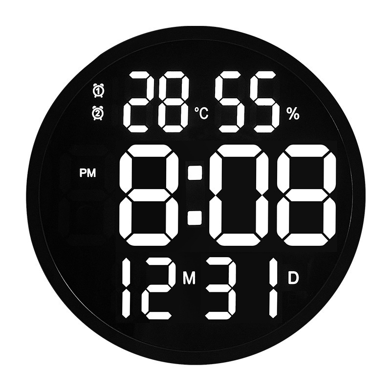 - 高品質 壁掛け 温度計湿度計LEDデジタル電子壁掛け時計照明自動感応夜光ウォールクロック カウンリビングリモコン付きウォールクロック