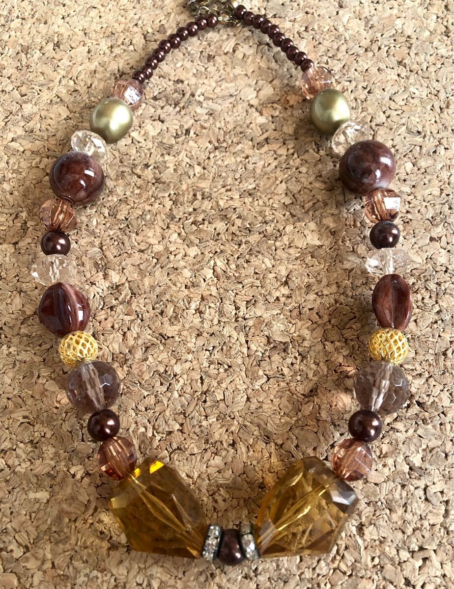 - ビーズネックレス コスチュームジュエリー ブラウン系 カラーストーン パワーストーン