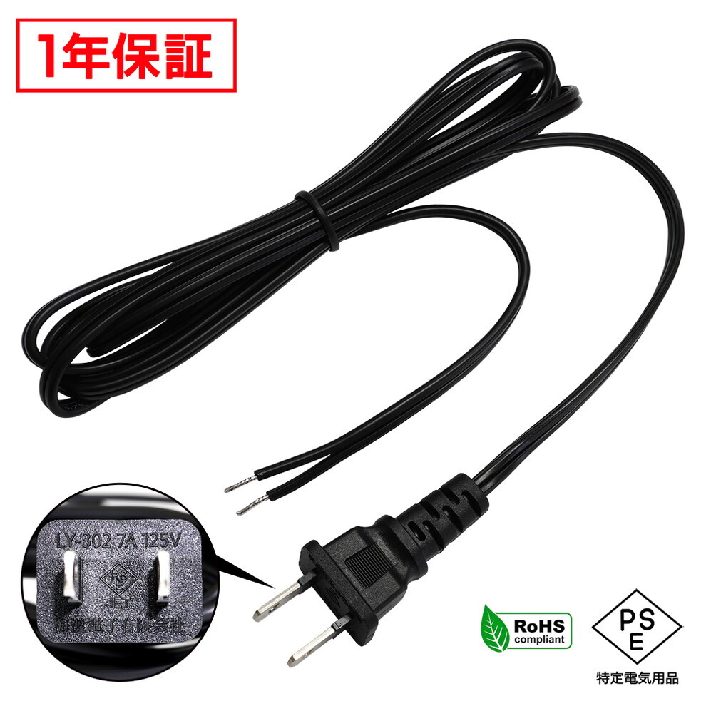 - 電源ケーブル ACケーブル 3m 切りっぱなし PSE適合 RoHS対応 安心の1年保証