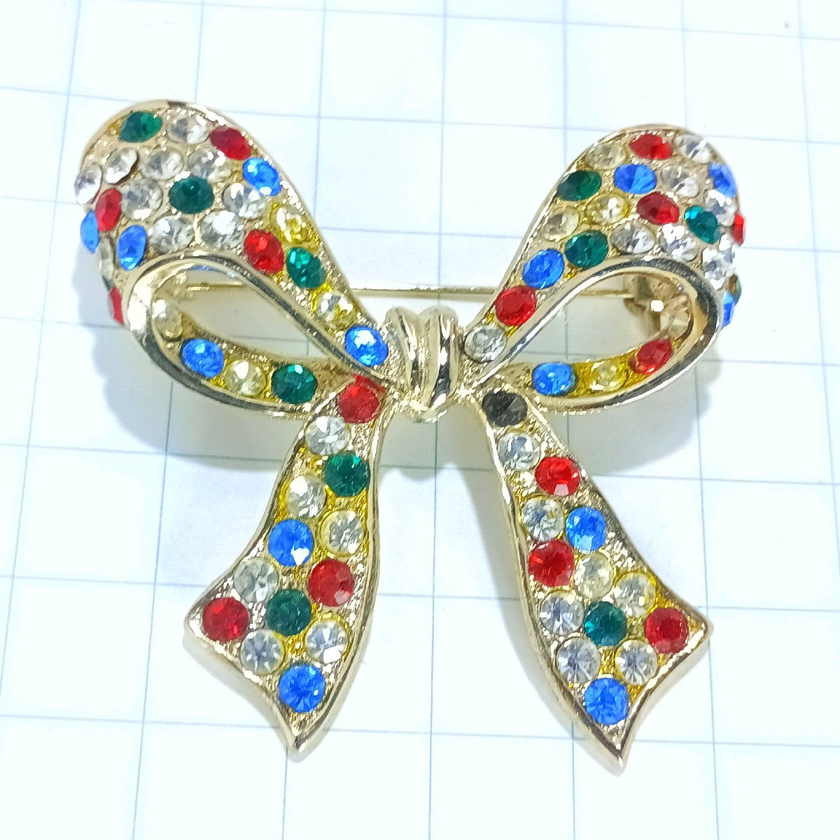 - 送料無料)ビンテージ☆カラフル リボンモチーフ☆アンティーク ブローチ A27786