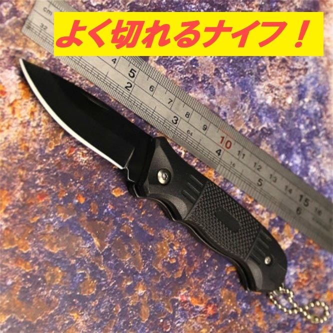 - 便利な折りたたみナイフ!! ポケットナイフ サバイバルナイフ 小型ナイフ キーチェーン付き! かっこいいブラック!