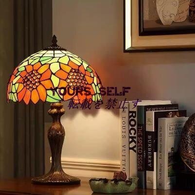 > ◆稀少品◆芸術品◆ステンドランプ ヒマワリ花柄 照明 ステンドグラス 室内装飾 レトロな雰囲気 ティファニー技法 デスクライト
