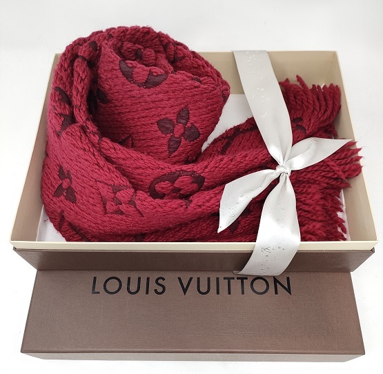 - ルイヴィトン マフラー レッド Louis Vuitton red 赤 モノグラム柄