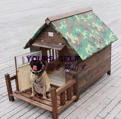 - 中型/大型犬用 犬別荘 ペットハウス 犬小屋 豪華 ハウス おうち 屋外 庭用 防水 ドア 窓 ベランダ 日よけ 屋上ズックカバー付属