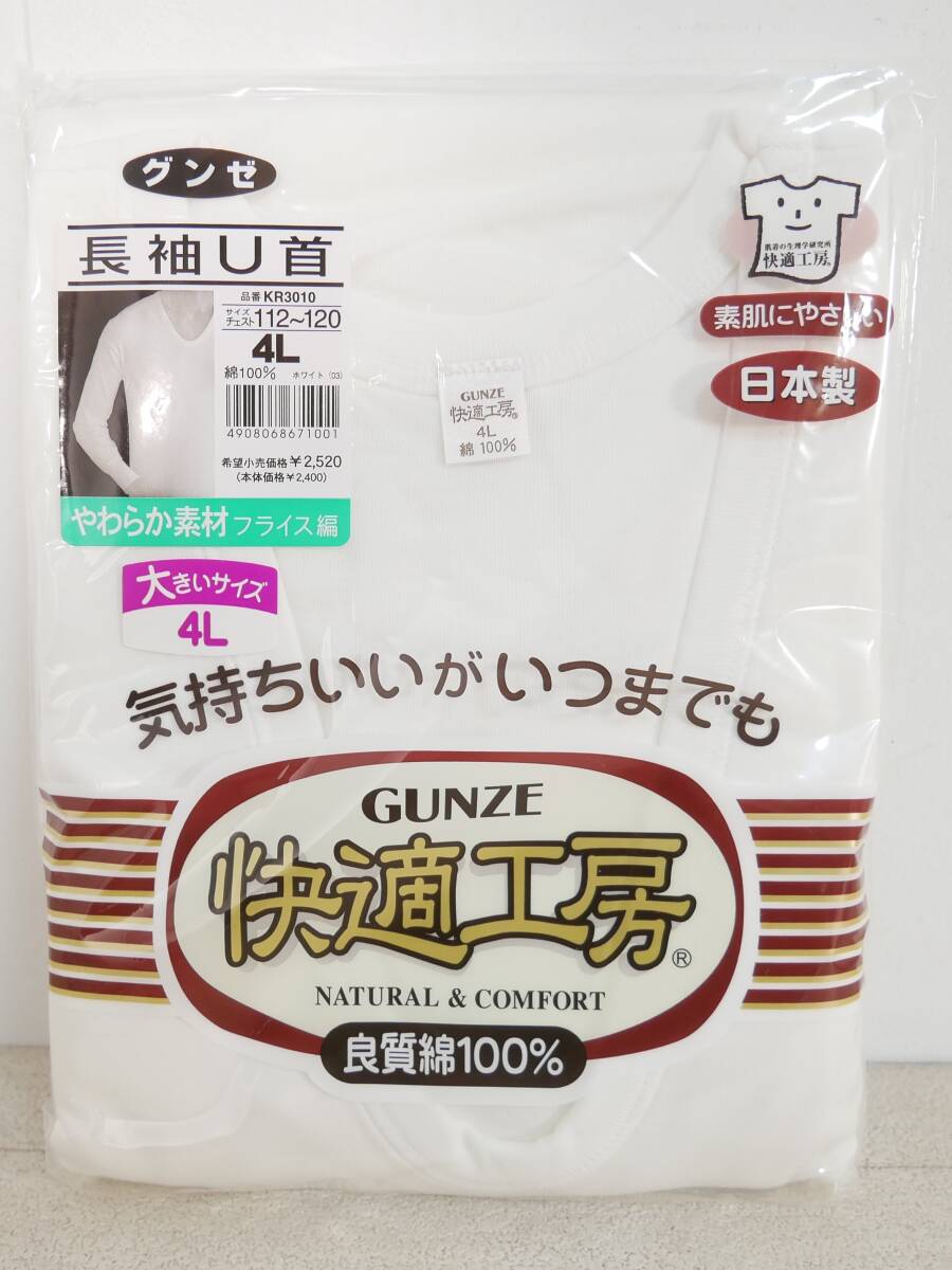 - ■GUNZE グンゼ◇メンズ・紳士 長袖U首 シャツ/下着 快適工房 4Lサイズ【KR3010】■新ラベル