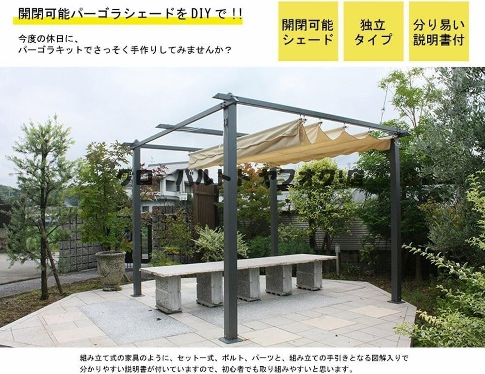 - 限定☆在庫わずか 高品質☆ シェード付パーゴラ ベージュ/テラス シェード 日除け オーニング ベージュ S989