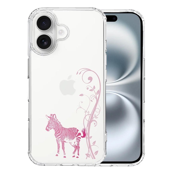 - iPhone16 ケース クリア フローラル ゼブラ ピンク スマホケース 側面ソフト 背面ハード ハイブリッド