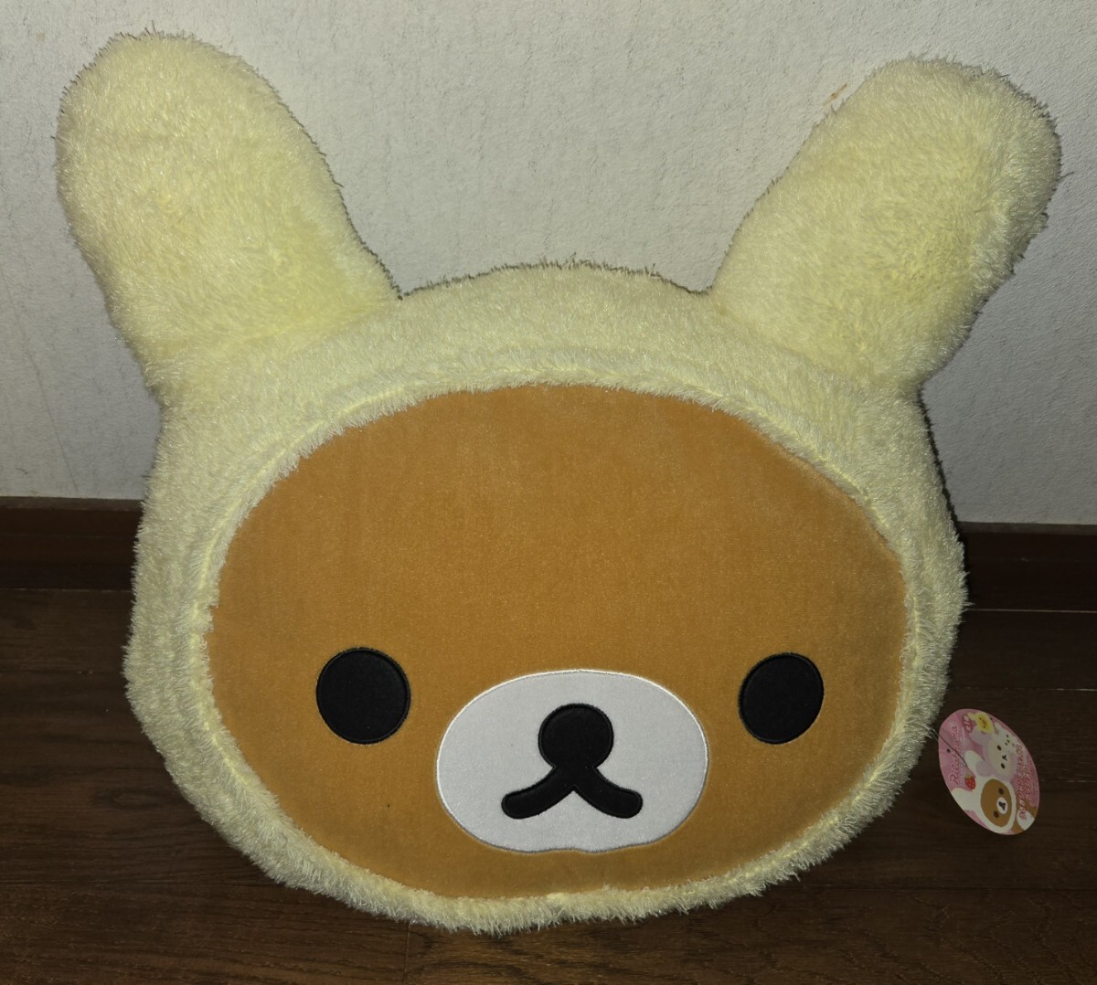 - リラックマ ぬいぐるみクッション 可愛い イエロー 黄色 被り物 インテリア雑貨 顔 BIG フェイス