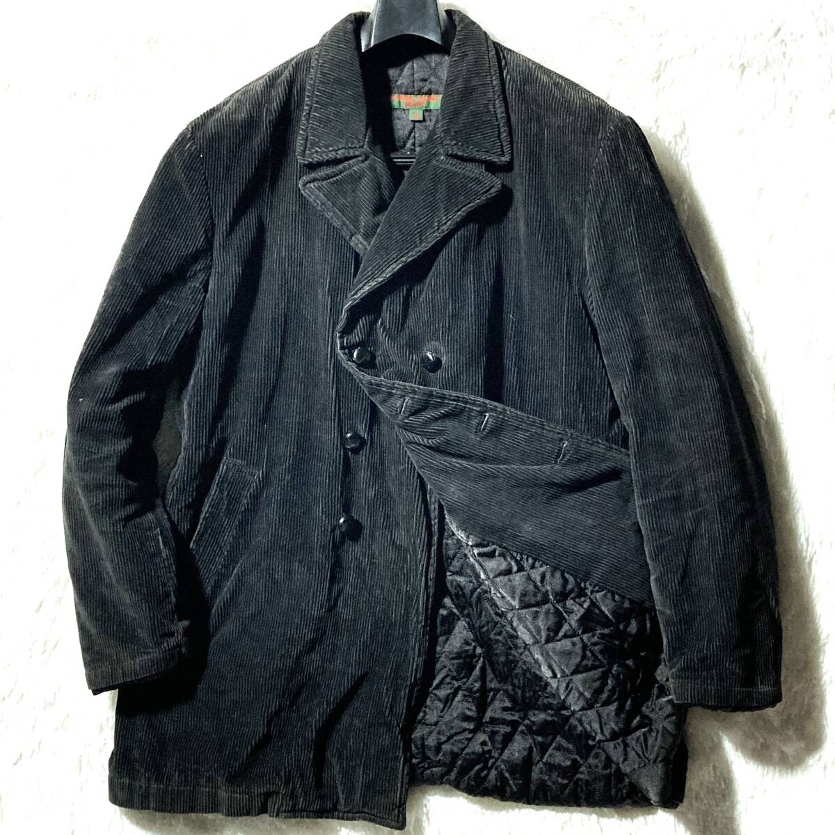 - KATHARINE HAMNETT DENIM★入手困難アーカイブ★90sヴィンテージ イタリア製★コーデュロイ くるみ釦Pコート ランチ 裏キルティング 黒 L