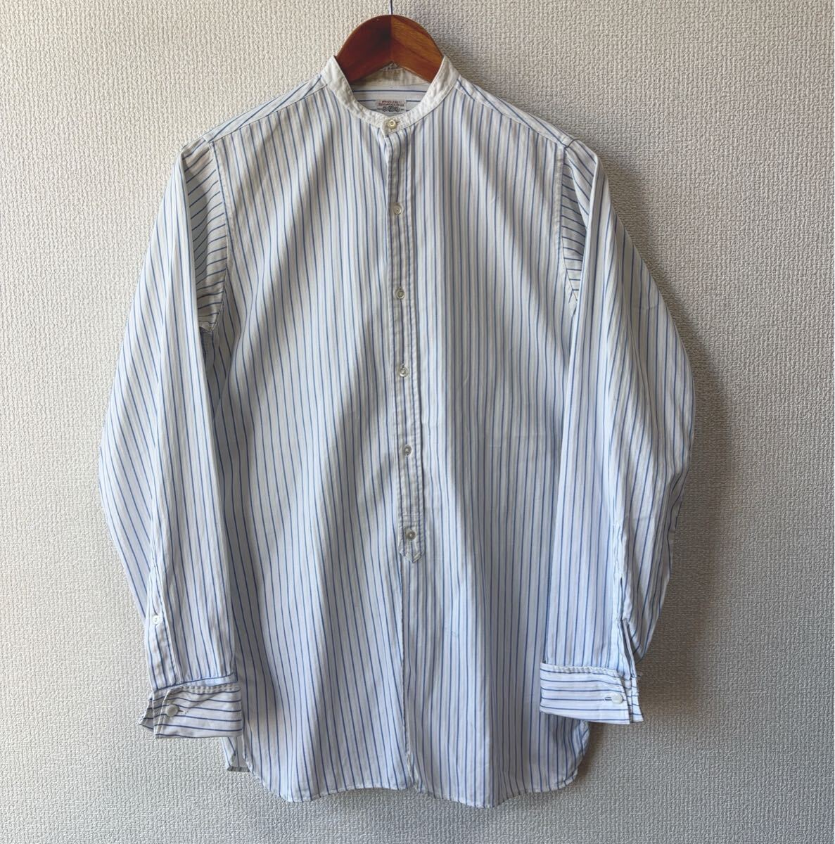 > ビンテージ ROSHEL バンドカラー ストライプ シャツ ヴィンテージ マチ付き ダブルカフス ドレスシャツ