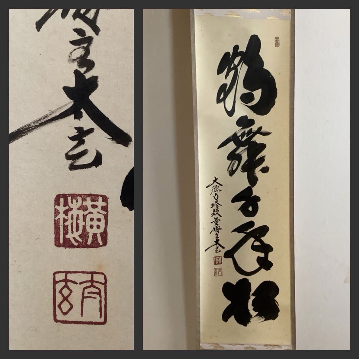 > 【模写】掛軸Ja727B[小林太玄 鶴舞千年翠]紙本 書いたもの 共箱/仏画仏教美術 臨済宗大徳寺派黄梅院20世住職 花押印  平安建都記念