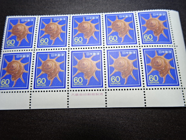 - 普通切手 リンボウカイ 60円切手 大蔵省印刷局銘鈑入り10枚ブロック 極美品 カタログ値1300円