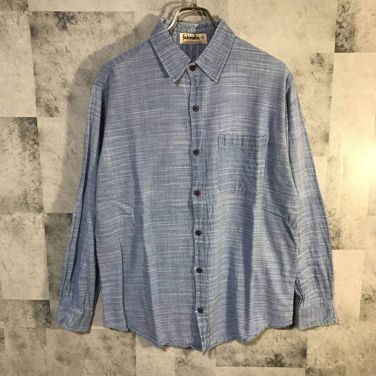 - 80s インド製 FABINDIA インド綿 シャツ サックスブルー 38