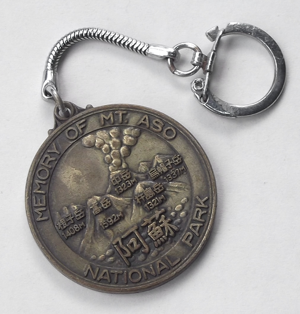 - 昭和 レトロ 古い キーホルダー 阿蘇山 登山記念 メダル 火山 山岳 標高 九州 国立公園 お土産 ご当地 観光地 旅行記念 ビンテージ