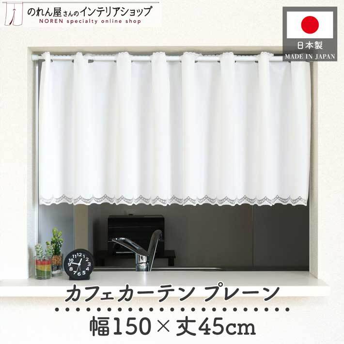 > カフェカーテン 150cm幅 45cm丈 洋風 シンプル 北欧モダン 小窓カーテン キッチンカーテン 小窓用 無地 白 プレーン ホワイト(95929)