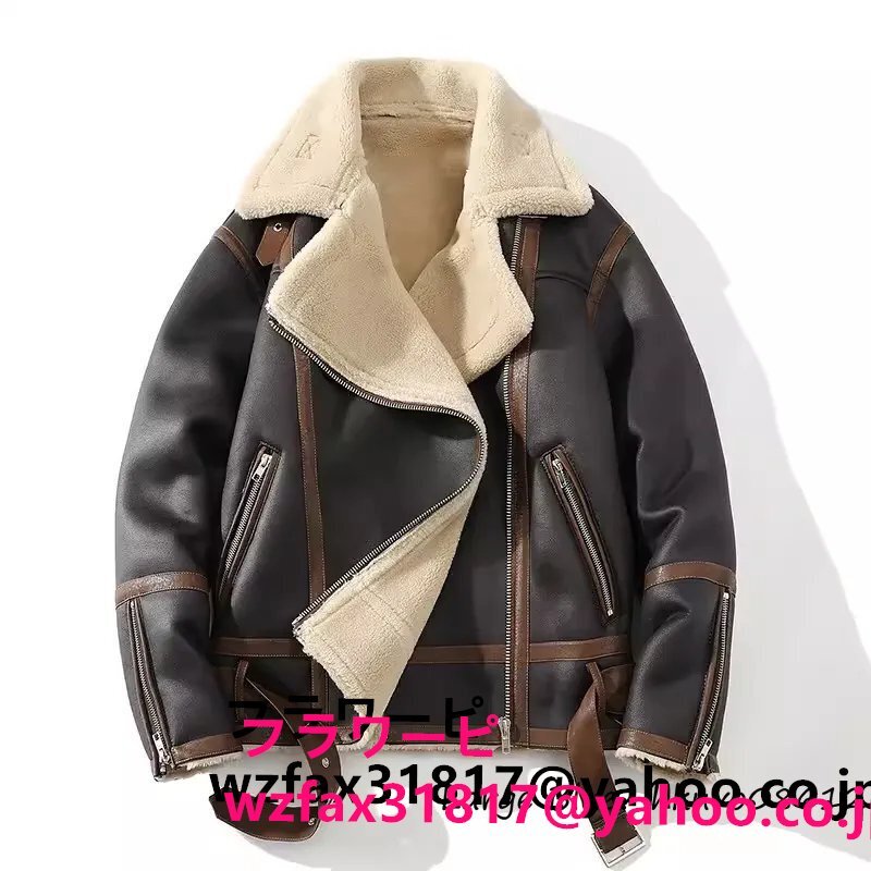 - 秋冬シーズンの最新ライダース フライトジャケット メンズ 超防寒 厚手 ムートンコート ファーコート レザージャケット ジャンバー L